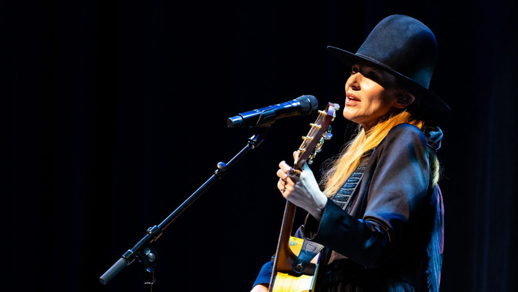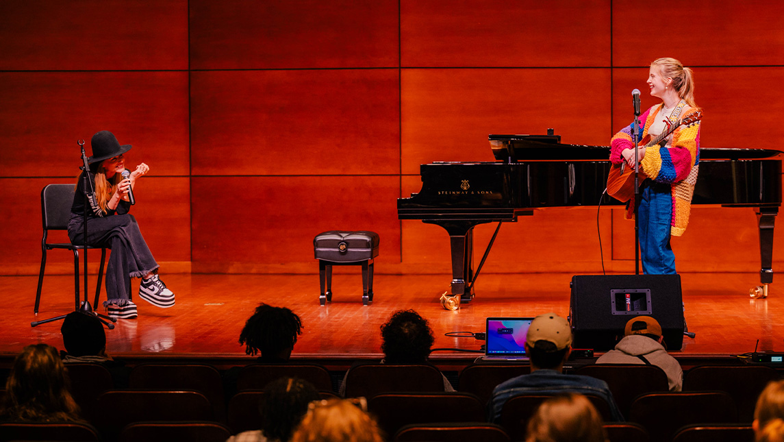 Ahead of her University Concert and Lecture Series performance at the UNCG Auditorium on January 12, Jewel led a masterclass with students from the School of Music. She heard songs from three students in the bachelor of music – popular music and technology program (PopTech): James Luca Pestena, Kaitlyn Tracy, and James Davis.