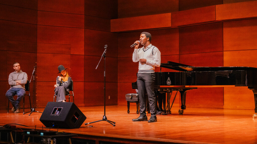 Second-year James Davis originally wanted to study classical performance at UNCG, but soon found the PopTech program was exactly the right fit. He performed his original song, “The Lovers,” for the first time.