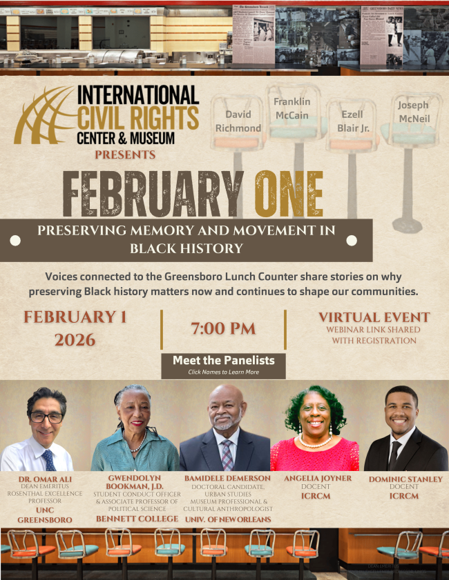 Voices connected to the Greensboro Launch Counter share stories on why preserving Black history matters now and continues to shape our communities. This is now a virtual event due to the weather.