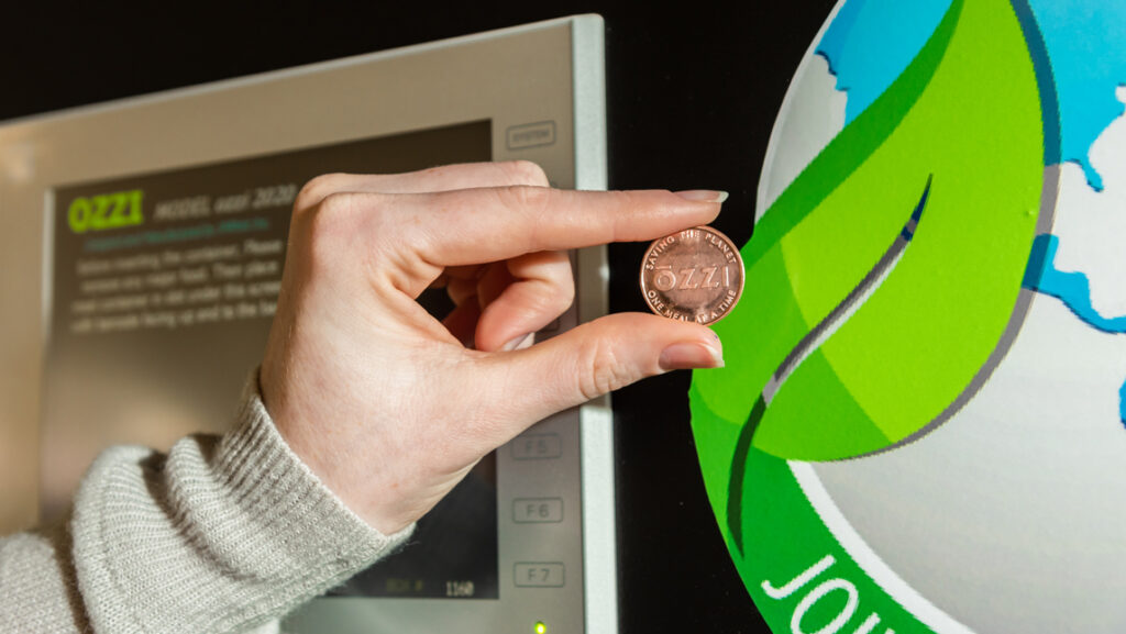 OZZI reusable to-go containers require a one-time refundable deposit of $7 payable by Flex Dollars or credit card at the Outta Here to-go location or Spartan Market on the first floor of Moran Commons. The next time you come to eat, bring back your to-go container and deposit it in the OZZI vending machine in the lobby, and you’ll receive a token to take to the Outta Here counter for a new to-go container. Repeat.