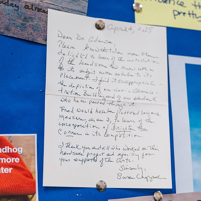 Back in December 2024, a mural was installed in the Dean’s office suite at the College of Arts and Sciences featuring JoAnne Smart and Bettye Tillman, the first two African American students at UNCG, formerly known as the Woman’s College (WC). Their portraits share the painting with a current depiction of the Foust steps, crowded with students representing different backgrounds and fields of study and emblazoned with a quote from the late Fred Chappell: “Brighten the corner where you are.”