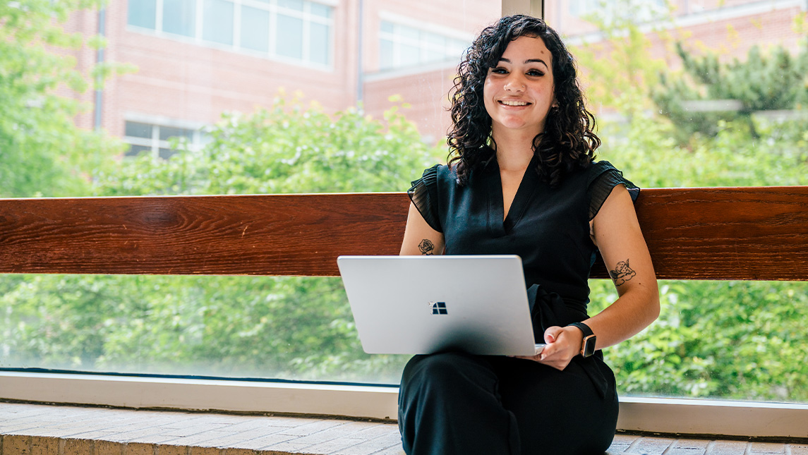 “I started out as a kinesiology major, wanting to go into physical therapy,” says Espada, who is from Gastonia, North Carolina. “Then, I had my daughter in 2019 and needed to transition to online education. That’s when I found the integrated professional studies program.”