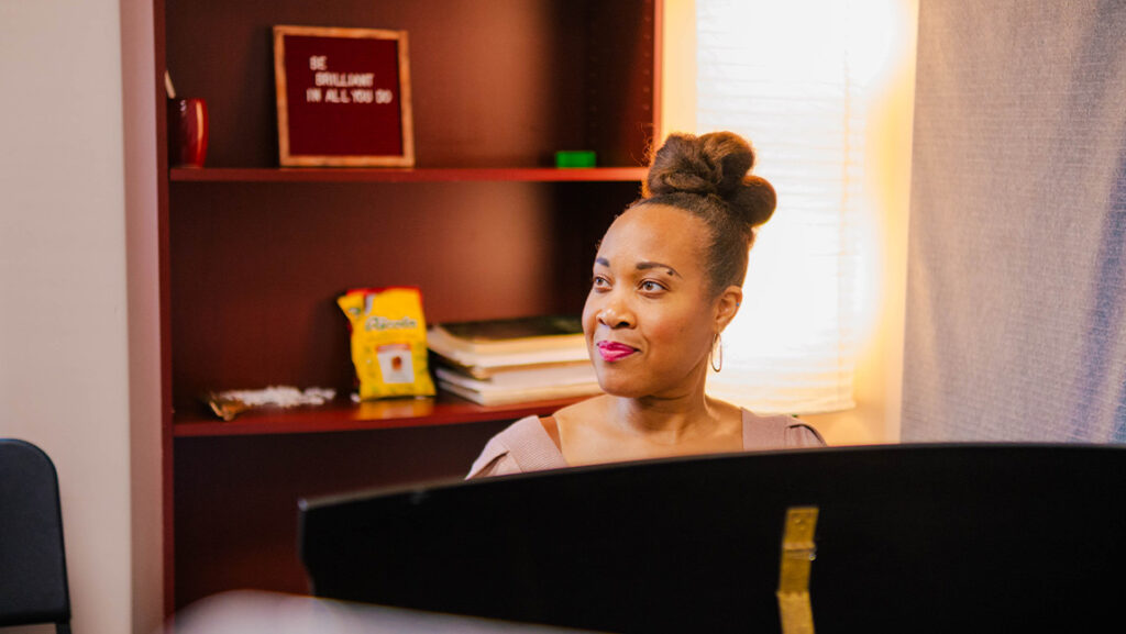 “Working with my students has helped to reinforce what I need to know as an artist,” she says. “It allows me to better articulate the fundamentals of singing and performance technique.”