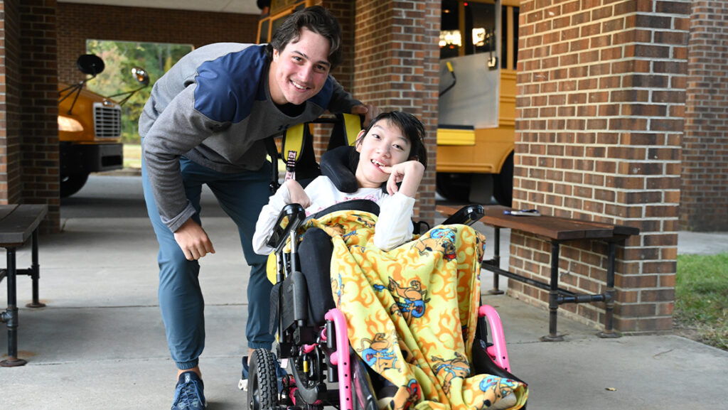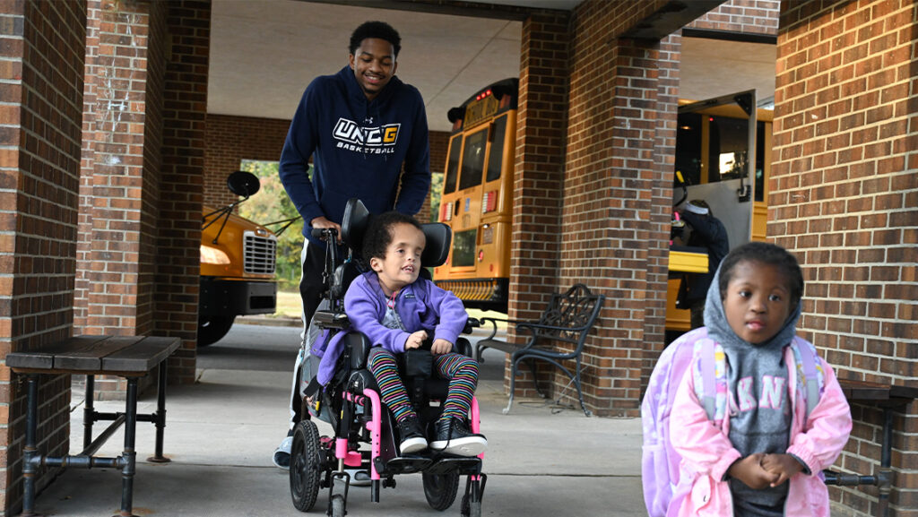 Since September 2023, UNCG student-athletes have been assisting the Gateway students three times a week. The Guilford County school works with children who have severe cognitive, physical and/or medical disabilities.