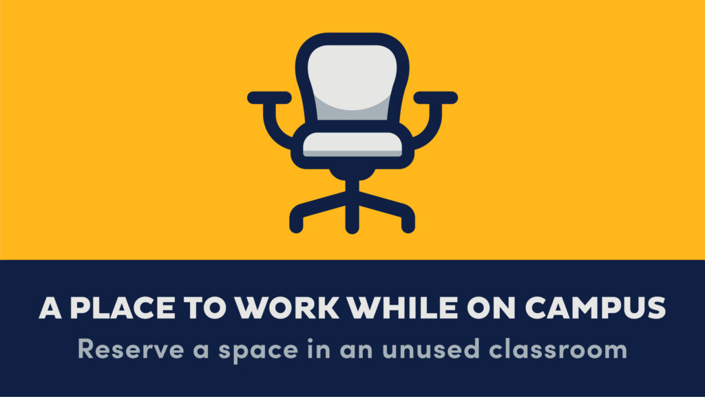 Available spaces are currently limited to classrooms that are not in use for a full day, therefore the options available do not reflect spaces that have open times between face-to-face class meetings.